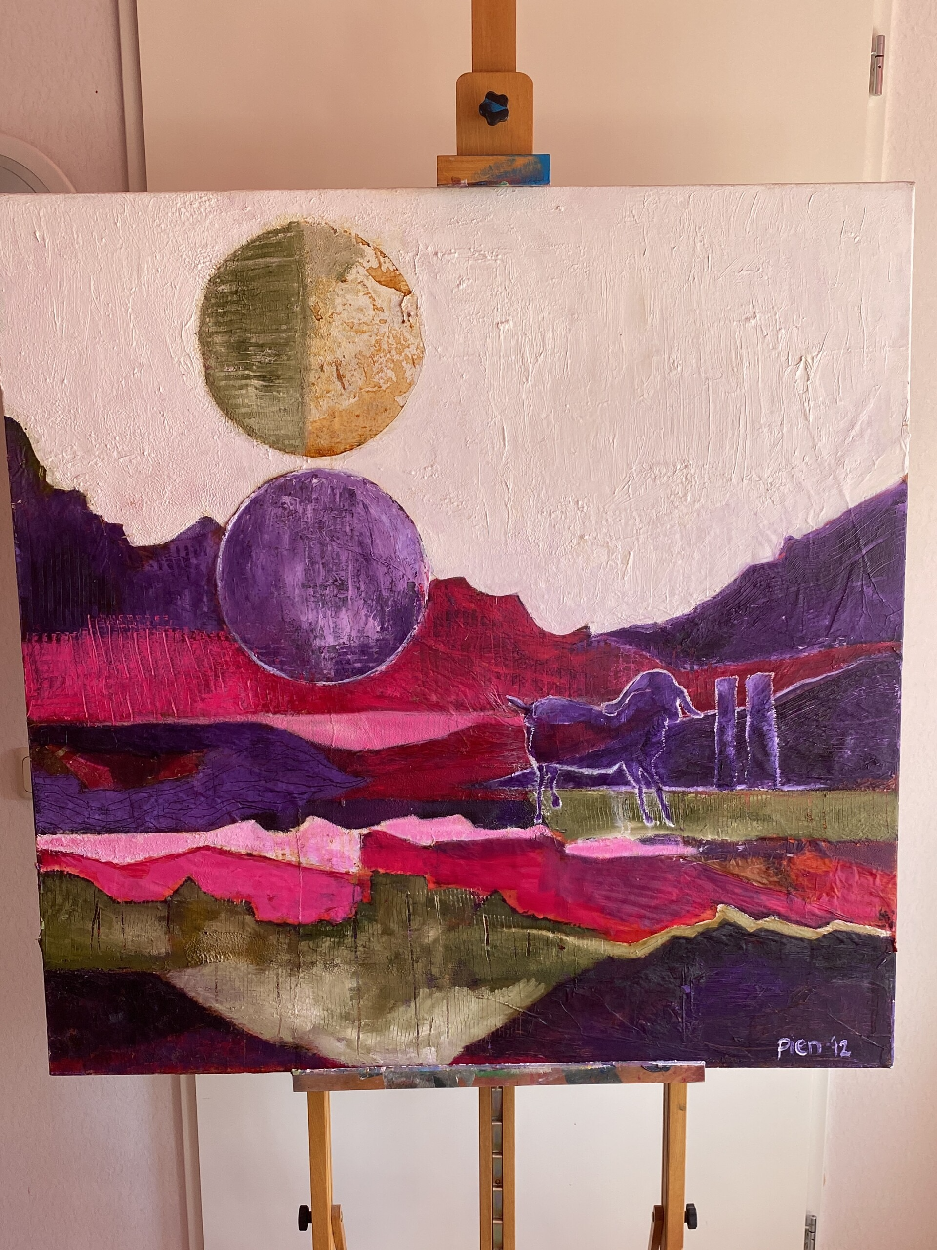 120 cm x 90 cm, vliesoline op doek en afgewerkt met epoxy met pigment, €600,=