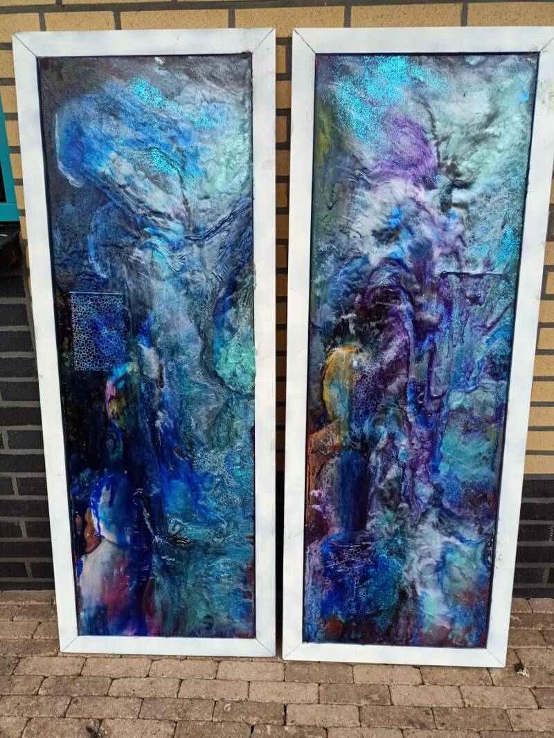 120 cm x 30 cm, vliesoline met epoxy en pigment, tweeluik, €1.300,=